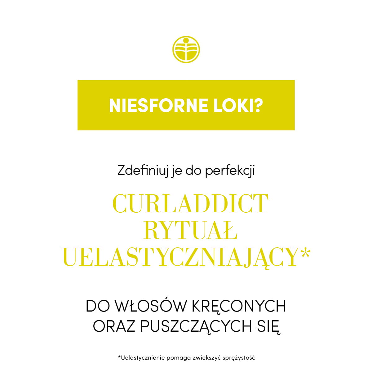 Maska uelastyczniająca do włosów kręconych i falowanych przeznaczona w szczególności do włosów kręconych i falowanych. Posiada aksamitną konsystencję i bogatą formułę. Chroni włosy przed czynnikami mechanicznymi i środowiskowymi. Nadaje lokom piękny kształt, połysk oraz dyscyplinę. Ekstrakt z Vitis vinifera zapewnia właściwości antyoksydacyjne i rewitalizujące, które nawilżają oraz uelastyczniają loki, uszczelniając łuski włosów. Maska zawiera olejek Jojoba, który posiada wyjątkowe właściwości odżywiające, nawilżające i emolientowe. Regeneruje, wzmacnia i intensywnie nawilża włosy podatne na elektryzowanie. Włosy zyskują połysk, miękkość i łatwość w rozczesywaniu. Formuła została wzbogacona cennym kompleksem Amino Concentrée, który natychmiastowo i bezpośrednio pielęgnuje włókna włosa, wybiórczo odbudowując je oraz zapewniając przedłużone i szczelne działanie specjalistycznych substancji czynnych, powodując długotrwałą elastyczność.